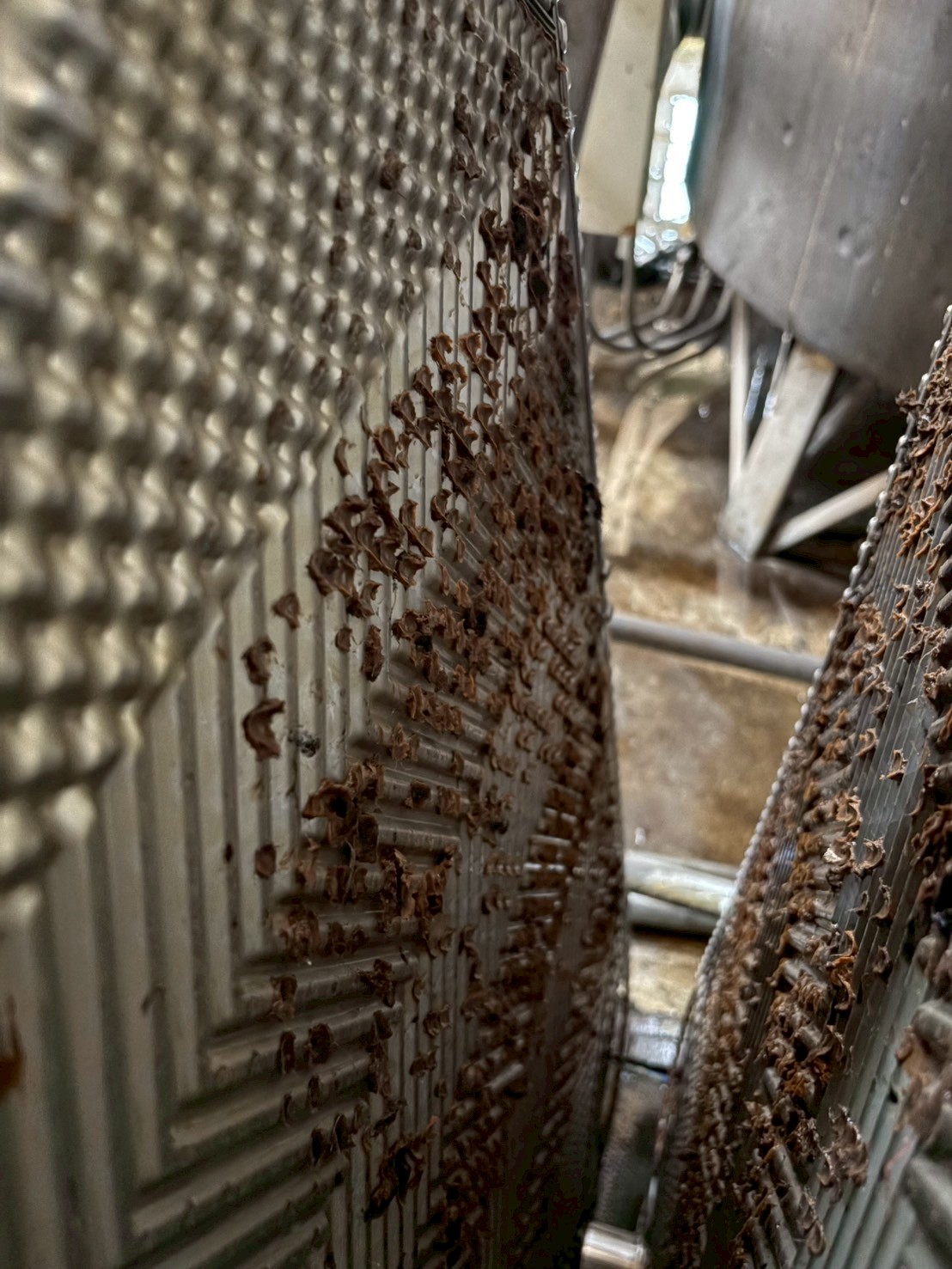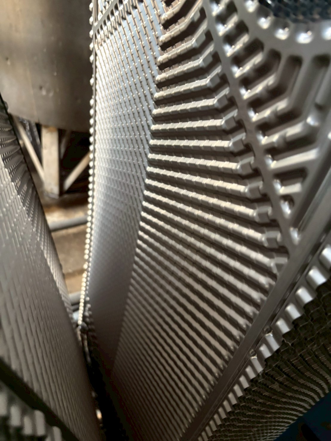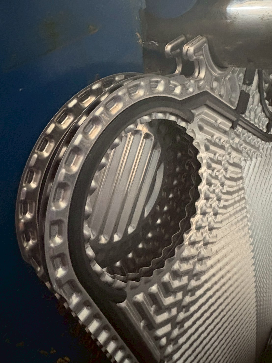 高週波冷卻用板熱,其中一側雖然為內循環的冰水較無結垢的問題,但另一側為半開放式的冷卻水,會有結垢造成熱交換效率衰退的問題,因此客戶委託我們前往維護.板片清洗→墊片更新→組裝→試機 保溫回復 工時在一天之內